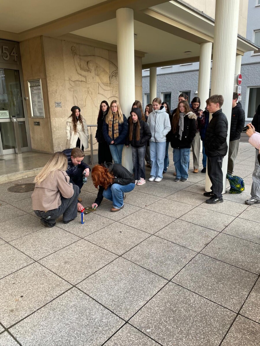 Im Anschluss an die Eröffnung und nach einem Videogrußwort aus Yad Vashem fand ein kurzes Gedenken an die Opfer des Holocaust statt. Danach reinigten drei Projektgruppen Stolpersteine in der Saarlouiser Innenstadt, darunter auch die Stolpersteine der Familie Loewy (Eltern und Schwester von Esther Bejarano), für die das Robert-Schuman-Gymnasium die Patenschaft übernommen hat.
